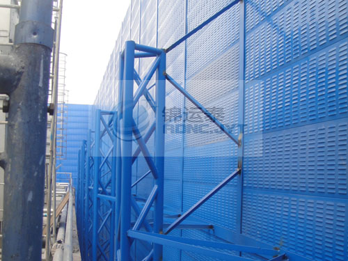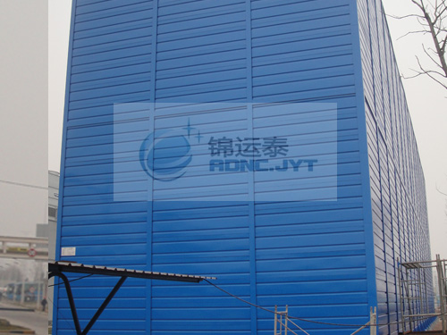 美光冷机房外的隔声屏障,高12米,属于超高声屏障,隔声量达到10dB。考虑超高声屏障的承重和风载,我们设计V字形固定结构。同时考虑到甲方对于声屏障景观的要求,将固定结构靠近机房。在保证良好的降噪效果的前提下,还符合该企业的景观设计要求,甲方对我们赞不绝口。