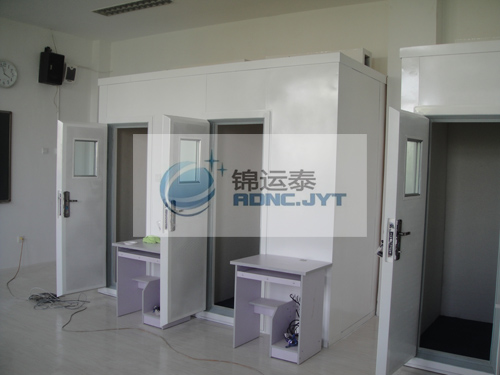 兰州大学语言测试间是我公司专为兰州大学定制的语言测试一体化设备,针对语言测试所需的声环境要求,我们采用专用的隔声材料设计研发,安装调试后该语言测试间内的环境背景声达到28dB(A)≤30dB(A),满足设计要求。此语言测试间不论是从声学效果还是美学效果都得到了长期驻美从事语言测试工作的刘教授的高度认可!